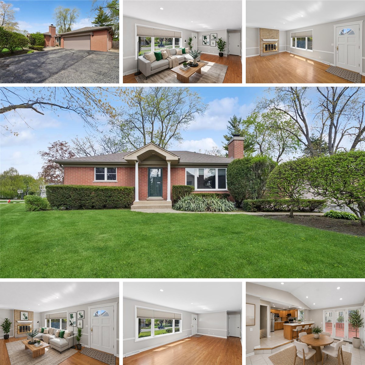 Nestled on an impressive 150x100 corner lot in one of Arlington Heights' most sought-after neighborhoods, 1603 N Evergreen Ave offers space, charm, and an exceptional location. This wonderful home is just a short walk to parks, schools, shopping, dining, and everything the area has to offer. Step inside to discover a warm and inviting interior featuring hardwood flooring throughout the entire first floor, new carpeting, and fresh paint throughout. The spacious living room is filled with natural light and centered around a beautiful stone fireplace, creating the perfect gathering place for family and friends. Just beyond, the dining area is sure to impress with its vaulted ceiling and skylight, bringing in an abundance of sunlight and adding an open, airy feel to the home. The kitchen offers an ideal blend of style and function with maple cabinetry and ceramic tile flooring, ample counter space, and easy access to the dining and living areas, making everyday living and entertaining a breeze. Two full bathrooms provide added convenience and flexibility for today's lifestyle. The finished basement offers incredible additional living space and is perfect for entertaining, relaxing, or working from home. Enjoy a large recreation area complete with a wet bar, plus a dedicated office ideal for remote work, hobbies, or study space. Whether hosting guests or enjoying a quiet evening at home, this lower level provides endless possibilities. Step outside to enjoy the expansive 39' x 14' cedar deck with trellis, the perfect setting for outdoor dining, summer barbecues, or simply relaxing while overlooking the spacious yard. Additional features include a 2-car garage, 200 amp electrical service, and an architectural roof installed in 2000. With its desirable corner lot, thoughtful updates, and unbeatable location, this is a home you will not want to miss!