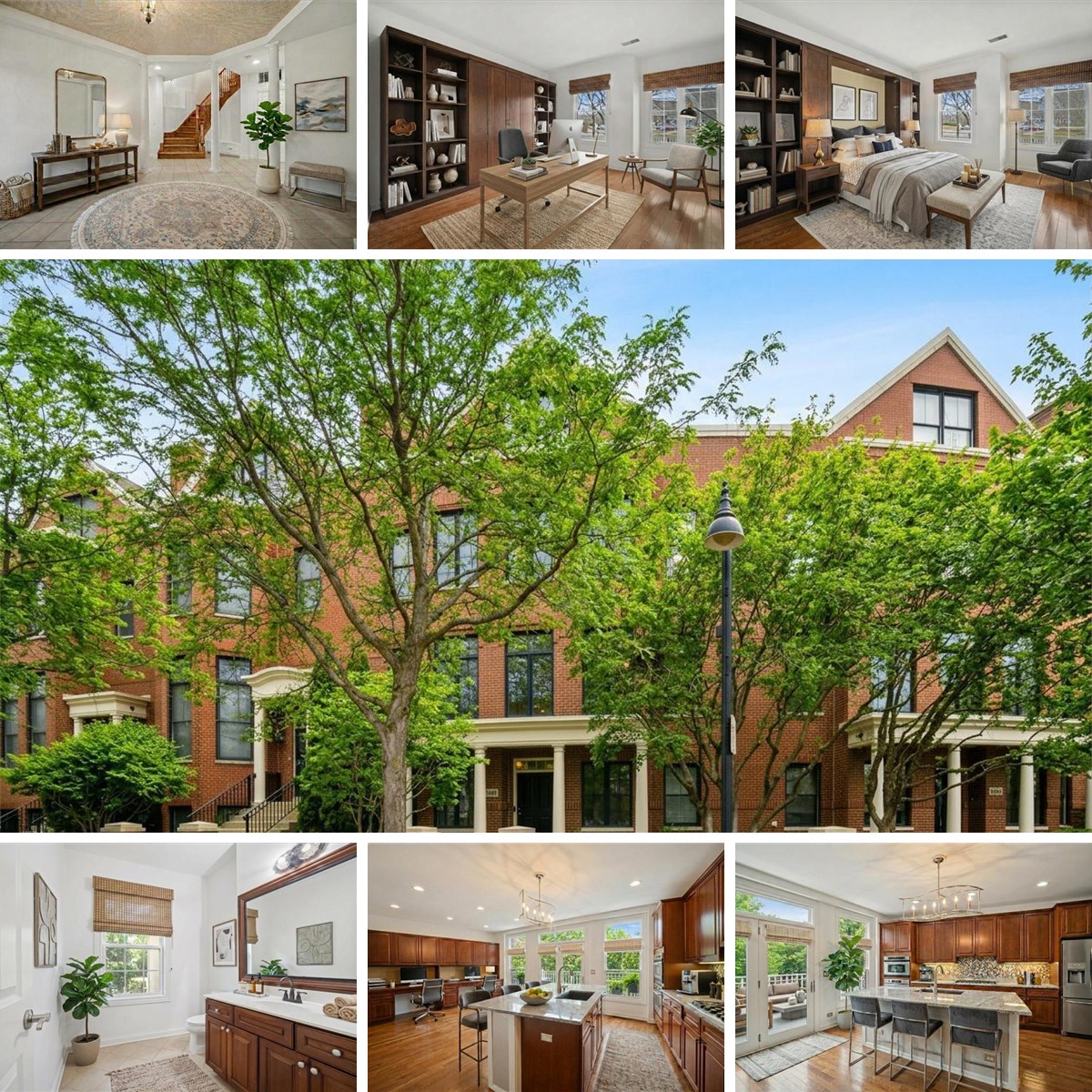 Rarely available 4-story Omni model townhome in The Glen in Glenview offering 3,625 sq ft of thoughtfully designed living space with 4 bedrooms, 2 full and 2 half baths and an attached 2-car garage. The main level features a versatile fourth bedroom or den with sliding doors and a Murphy bed-ideal for guests or a home office. The second floor showcases an expansive chef's kitchen with a large island, pantry, and 8-foot butler's pantry with built-ins-perfect for small appliances or a coffee bar-flowing into a dramatic 33-foot sun-filled living and dining area highlighted by a wall of windows, gas fireplace, and custom built-in bookcases. The entire 1,100 square foot third floor is dedicated to a luxurious primary retreat featuring a primary bedroom with seating area, perfect for an office space, nursery, or gym. Two oversized walk-in closets, double vanity, soaking tub, water closet, and an expansive walk-through shower with dual rain heads. The top floor offers two enormous vaulted-ceiling bedrooms, each with a hidden door leading to a charming little hideaway playroom. Located in the award-winning Glenview school district. The Glen-a premier 1,121-acre neighborhood featuring shopping, dining, and entertainment at The Glen Town Center, and close to parks and local attractions including Kohl Children's Museum, Navy Park, Lake Glenview, and golf at The Glen Club, plus convenient commuting via the nearby Metra station for quick access to downtown Chicago. PLEASE NOTE PHOTOS ARE VIRTUALLY STAGED, BOT NO FINISHES WERE ALTERED.
