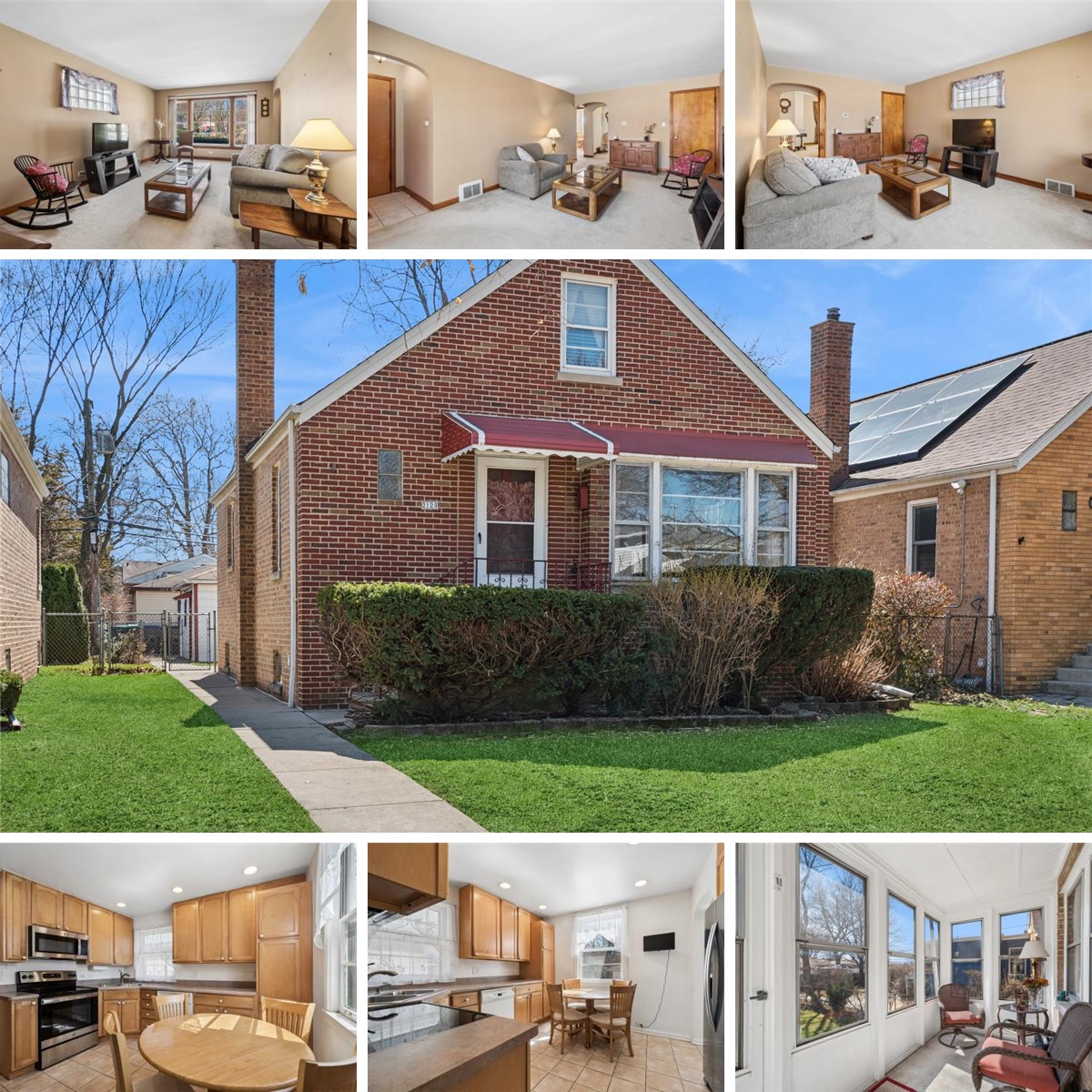 Sweet brick bungalow has been beautifully maintained by second owner of over 50 years. Solidly built with recent tuckpointing, newer roof & gutters 2021 and AC condenser 2024. Nice main floor living room, bedroom and full bathroom, plus a good-sized separate dining room. Hardwood floors can be found under the neutral carpeting. Sunny updated kitchen features 42 inch maple cabinets, with a stainless stove, microwave and fridge, plus table space and a pretty view of the fenced-in yard. Charming rear porch serves many functions year round. Upstairs enjoy two family bedrooms and downstairs find a comfy rec room with dry bar, a full bathroom, utility, workshop, laundry and a walk-out to the yard and 2 car garage. This is a very clean home on a quiet street, convenient to shops, James Park, Dawes elementary school and a tot lot across the street! Pride of ownership abounds. This home is ready for you to start the next chapter.