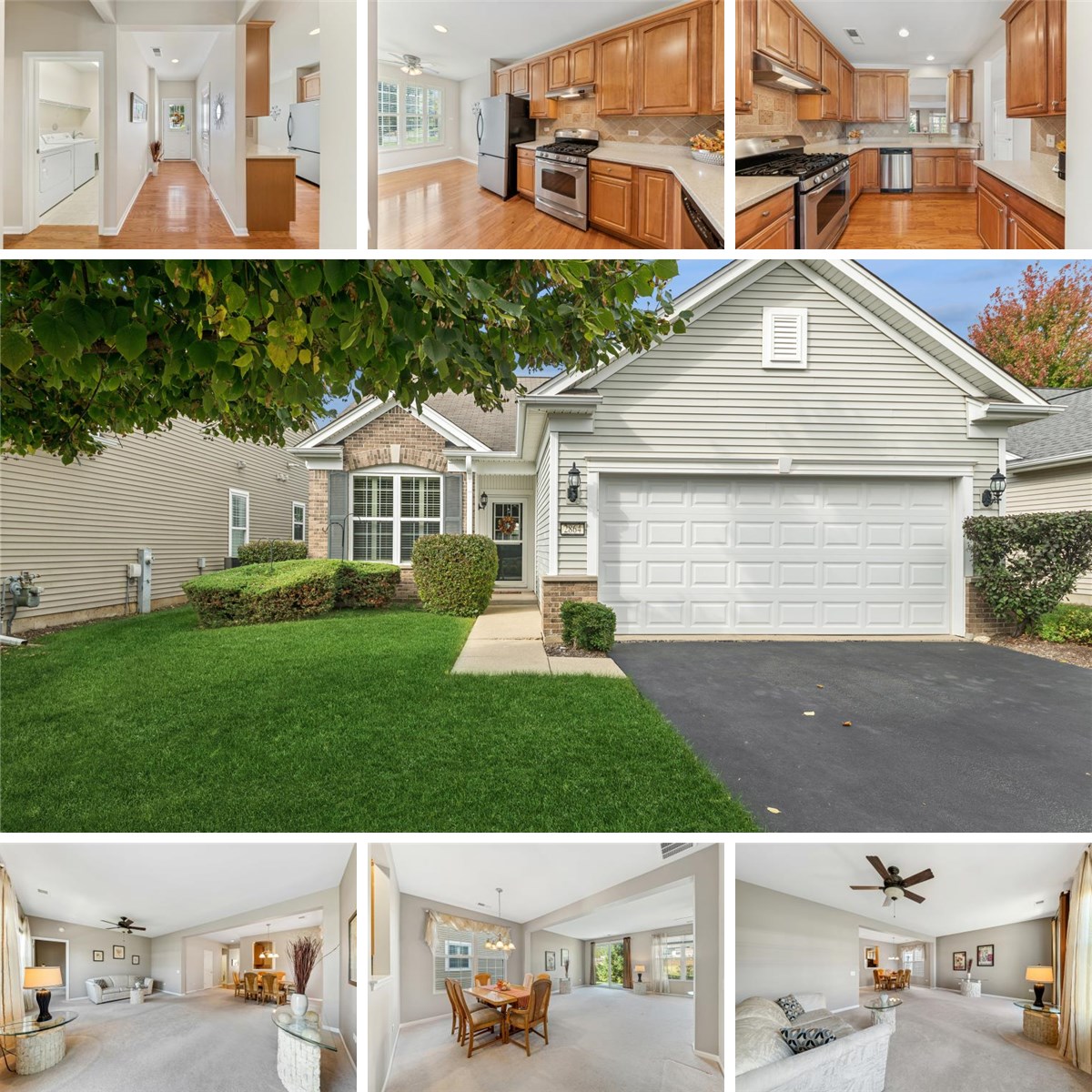 Edgewater by Del Webb* Ranch with 2 bedrooms, 2 baths, 2 car garage, and is the Monroe model. Has eat-in kitchen, dining room, with 1425 sq.feet. Backs to open space area with no homes close. Eastment for gas line in open space behind house. Home has a replaced hot water heater, newer dryer, and hardwood floors in foyer and kitchen. Kitchen has 42" taller cabinets, backsplash, corian counters, stainless appliances, plantation shutters in kitchen with fan/light; bay window in master bedroom; ceramic tile on bathroom floors, 2 mature trees in yard. Quick possession possible. HOA will be $292.00 in 2026 and covers snow and grass maintenance, driveway sealing and mulching every 2 years, a gated community with 24/7 guard, and indoor and outdoor pool, billiard room, and many activities for this Active Adult Community. One person living in Edgewater must be at least 55 yrs. old.