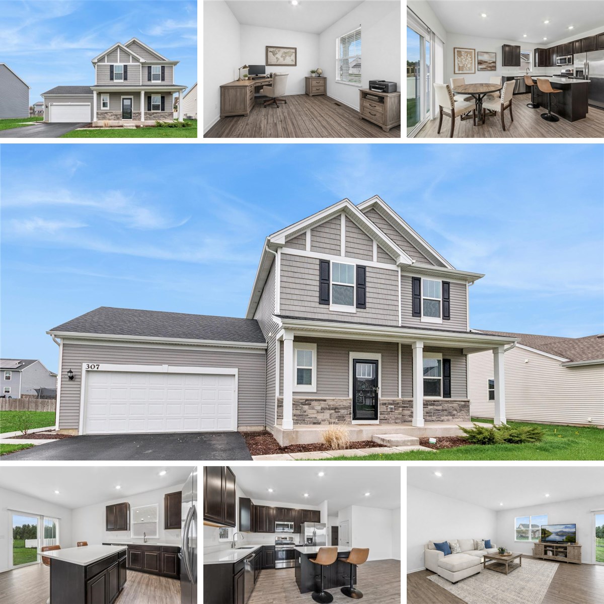 This spacious 4-bedroom, 2.5-bath home with a 2-car garage featuring an epoxy-sealed floor offers the perfect blend of modern style, comfort, and convenience. From the moment you arrive, you will appreciate the covered front porch, ideal for relaxing with your morning coffee. Inside, a flexible front room provides the perfect space for a home office, playroom, or sitting area. The heart of the home is the open-concept kitchen and family room, designed for both everyday living and entertaining. The kitchen features a large island with seating, 42-inch cabinets, quartz countertops, and stainless steel appliances. Conveniently located off the garage is a private main-floor laundry room with a large closet for added storage. Upstairs, the spacious primary suite offers a large walk-in closet and a private bath with an oversized shower, raised-height vanity, and quartz countertop. Three additional generously sized bedrooms provide plenty of room for everyone. Step outside from the sliding glass door off the kitchen to enjoy the fenced backyard, complete with a large concrete patio off the back and a concrete walkway around the home, perfect for outdoor entertaining, relaxing, and play. The unfinished basement is waiting for your ideas and offers endless possibilities for future living space, a home gym, or extra storage. Basement already includes additional electrical runs through out