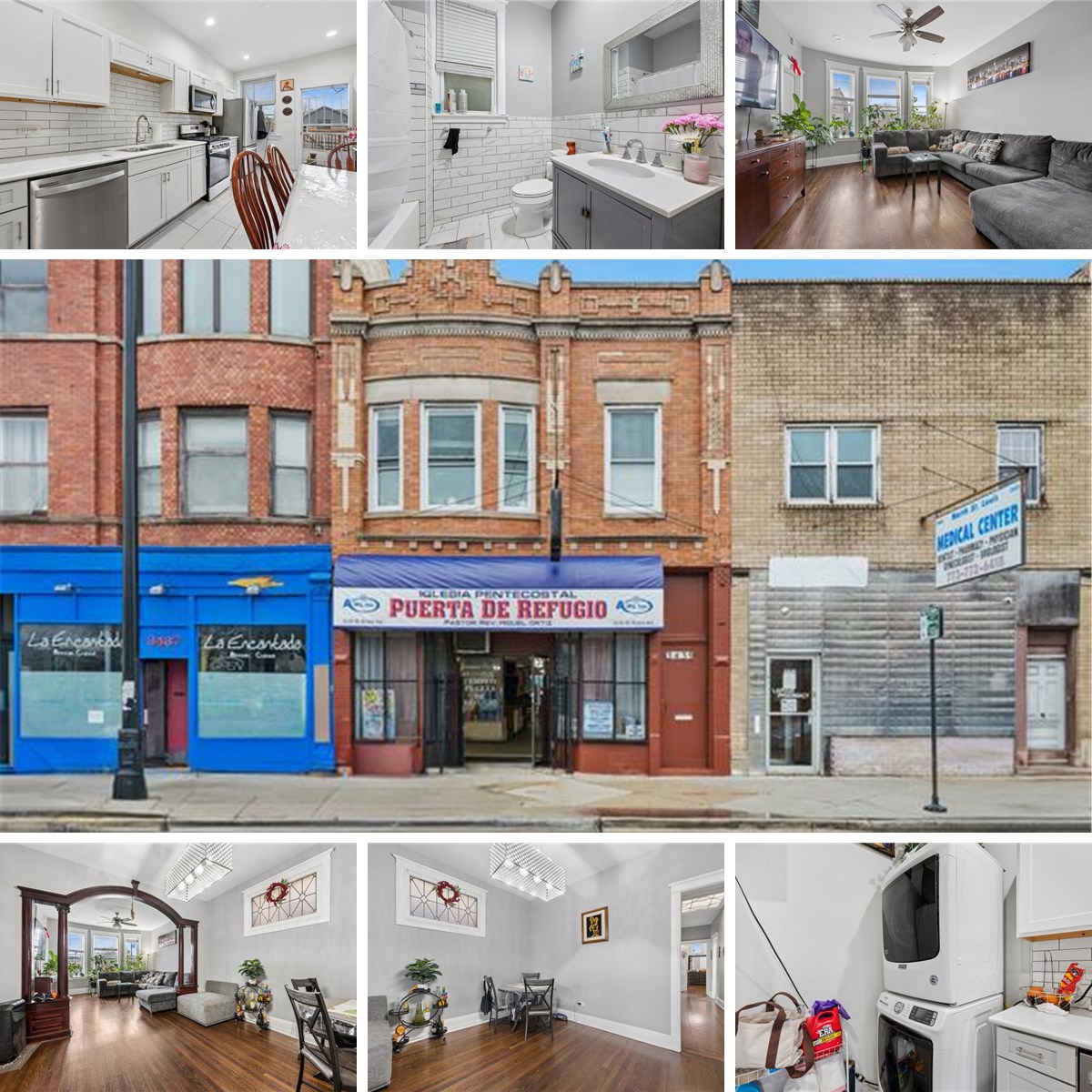 Discover a fabulous opportunity located in the bustling Humboldt Park neighborhood. This versatile mixed-use property combines modern living with a thriving commercial potential. Featuring a totally renovated 1360 sq ft, 4 Bedroom/1 Bath Apartment, boasting a contemporary Kitchen, with white cabinets, quartz counters, stainless steel appliances and opens to a 20x20 deck- perfect for entertaining. Refinished hardwood floors throughout the spacious layout, new windows, recess lighting, washer & dryer in unit, an updated electric panel, and fully remodeled Bathroom. The property includes 2 Parking spaces in a secure, gated yard. An ideal Retail space suitable for Investors or Owner-occupants. Currently leased as a Religious facility, it features 2 Bathrooms, and office on main floor, and an additional bathroom in the finished Basement, and kitchen area providing a total of 3252 sq ft of usable space. Great investment opportunity with excellent visibility and accessibility, this property is perfect for both investors and business owners.