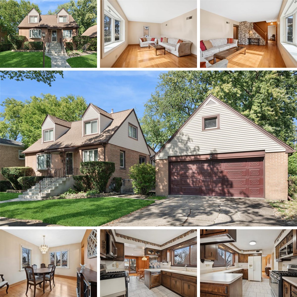 Gorgeous double lot is the backdrop of this quality brick Cape Cod nicely maintained condition with so much potential. Beautiful property offers endless possibilities! Rare to find 75ft frontage with an amazing 2 1/2 car front load brick garage with 500sq ft loft, for a great hobby space or future ADU?? Cared for by long-term owners, this brick 2130 sq ft Cape offers a main floor bedroom and full bath, two beds up with full bath, partially finished basement with 1/2 bath, main floor living, separate dining room, kitchen, breakfast area, family room and additional storage room or fabulous pantry! This house needs updating and has great bones! However, the stove and microwave are newer, the AC is newer, most windows were replaced. Bring your imagination to transform this quality home into your forever home!! The expansive rear yard is ready for a summer football game and/or a winter skating rink! Grand-sized rear deck provides room for a large party and afternoon shade, looking over a beautiful mostly fenced yard with mature trees.
