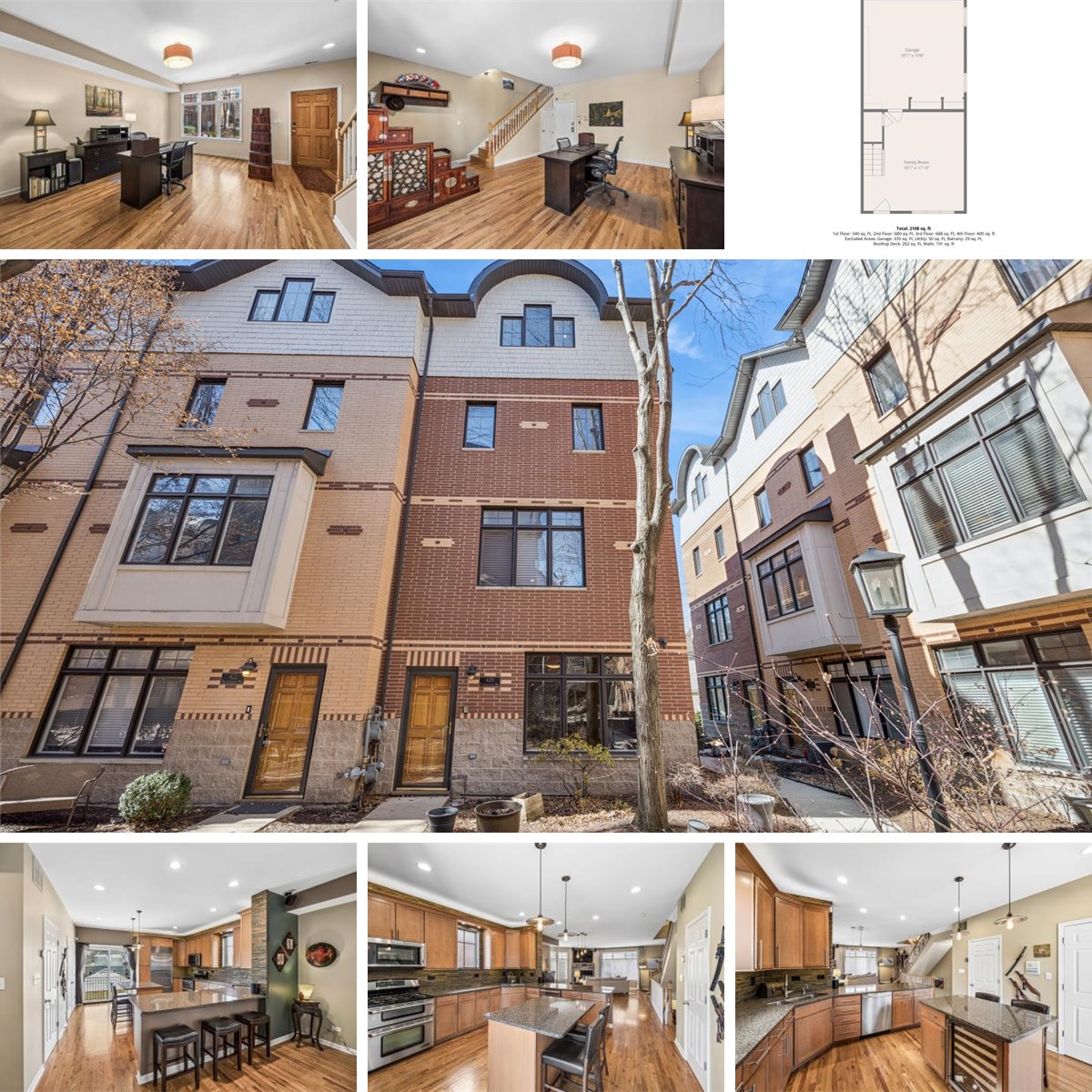 Corner unit perfectly positioned in the coveted Madison Square facing the open courtyard - bathed in natural light with hardwood floors throughout and exceptional upgrades at every turn. The chef's kitchen impresses with a SubZero refrigerator/freezer, 2-temperature wine refrigerator, Jenn-Air double oven, exterior-venting hood, instant hot water at the sink, 2-stage cold water filtration, and thoughtful storage including pantry sliding doors, cabinet roll-out drawers and Elfa systems. Step onto the west facing kitchen balcony, featuring Trex decking and a new Marvin slider (2020). Smart home features abound: surround sound, Ecobee thermostats, motorized window treatments, and a Sony Bravia 65" 4K Smart TV (2021). EV car charger included. Three parking spaces total - 2 in the garage plus 1 exterior parking pad. The 3rd floor offers bamboo floors, Elfa closets, 2 bedrooms, 2 ensuite baths, and in-unit laundry. The primary bath is plumbed for a second sink, one is hidden now with an expanded countertop, and generous floor to ceiling cabinetry for added privacy and storage. The 3rd floor primary suite and 4th floor 3rd bedroom each feature a dedicated mini-split for year-round comfort and energy efficiency, as supplemental heat and AC. The 4th floor ensuite opens, through a new sliding door (2019), to a stunning Unilock Delconca porcelain tile deck with ipe wood railings (2019). HVAC updates: 2nd floor furnace & AC (2021); 4th floor furnace (2021), AC (2019). Located in Oak Park's top-rated school district with an easy commute to downtown Chicago - walkable to transit, dining, shopping, and parks. Welcome home.
