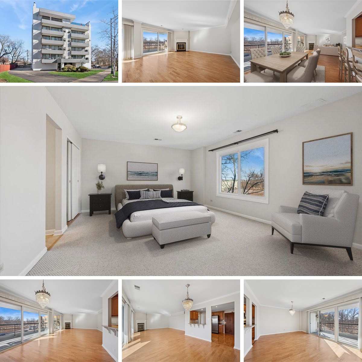 Experience exceptional space, natural light, and effortless single-level living in this remarkable residence featuring an expansive, thoughtfully designed interior. With only two units per floor, this refined fourth-floor home lives like a private residence, offering a rare sense of openness paired with a serene, elevated setting. Sun-filled living and dining areas are beautifully proportioned for both elegant entertaining and everyday comfort, seamlessly extending to a generous private balcony overlooking a tranquil forest preserve and surrounding neighborhood — an idyllic backdrop for morning coffee or evening gatherings. The bright, updated kitchen features extensive custom cabinetry, granite countertops, stainless steel appliances, and abundant workspace for the discerning home chef. Through elegant French doors, the spacious primary suite offers a peaceful retreat with eastern exposure, a professionally designed walk-in closet, and a spa-inspired bath showcasing an oversized walk-in shower with built-in bench and dual granite-topped vanity. There are two additional generously sized bedrooms, one currently styled as a den with French doors, provides versatile living options complemented by a well-appointed second full bathroom. Additional features include a side-by-side in-unit washer and dryer, exceptional storage throughout, a wood-burning fireplace (AS IS), indoor heated garage parking with a dedicated storage unit, and convenient guest parking. Meticulously maintained and freshly painted (2026), the home also benefits from thoughtful updates including AC (2023), water heater (2024), windows (2013), and a newer dishwasher. Set within an intimate, self-managed boutique building of just nine residences, this property offers both privacy and a strong sense of community, along with low monthly assessments. Ideally located with easy access to shopping, highly regarded schools, transportation, and everyday conveniences, this is refined condominium living at its finest.