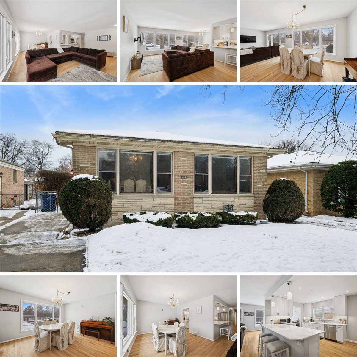 Lovely mid century brick ranch with an open floor plan featuring hardwood floors. Living & dining room combination, updated kitchen with ample cabinetry, quartz countertops & island. Three bedrooms and updated bathrooms. Basement / recreation room with brand new carpeting, office, storage and large laundry room. Conveniently located near schools, shopping, near Old Orchard Mall, transportation and easy access to Edens Expressway. Don't miss - a must see!!! Seller is related to the listing agent.