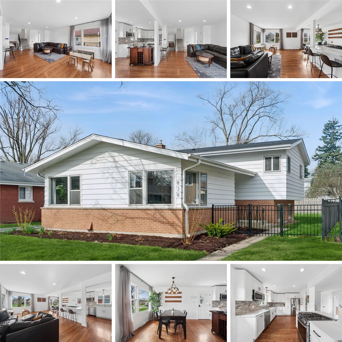838 S Saylor Ave is an updated, charming, and move-in-ready split level in a great location of Elmhurst! This home features a spacious and inviting modernized open-concept floorplan that is perfect for both everyday living and entertaining. Step inside to discover a bright and airy updated kitchen, living room, and dining room, where large windows fill the space with sunshine and create a warm and welcoming atmosphere. Gleaming hardwood floors add beauty and character throughout much of the home, while the open feel of the main living areas provides plenty of room to gather with family and friends. The sun-filled fully renovated kitchen featuring a large center island offers abundant cabinet space, ample room for meal preparation, and a charming window above the sink that brings in even more natural light. Upstairs, you will find three comfortably sized bedrooms and an updated full bath with modern fixtures. Your primary bedroom has its own private half bath for added convenience. The lower level offers even more living space with a large family room that is perfect for relaxing, movie nights, entertaining, a playroom, or a home office. An additional half bath on the lower level adds functionality and convenience. Outside, the property continues to impress with a detached 2-car garage and a fenced in yard and outdoor space ready to enjoy. Welcome home!